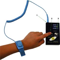 - Extremely easy to use. Just move your finger from wrist strap button to footwear button to complete the test (without need to remember to switch from one measurement to the other like with other manufacturers units).