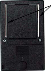 Place the meter on the flat surface. Connect the two test wires supplied with the meter to the jacks on the top of the meter (jacks shown on the picture on the left side). Connect the other side of the wires (crocodile clips) to the two points between which the resistance is to be checked. Press the center button labeled Test and the LED will illuminate to indicate the resistance between these two points. If the LED labeled " insulative" illuminates, the resistance between the two points is greater that 1012 ohms. |