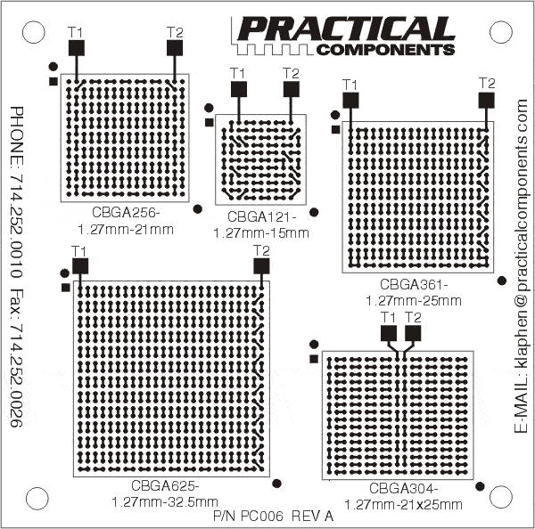 | PCB006 CBGA Test Board | 5 | 10 | 15 | 20 | 25 |