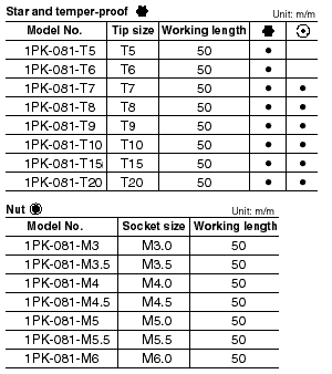 Temper-proof holes are provided for screws such as torx screws with a projection in the screw head. These screws are used in cases where tempering could be a problem. Select the size for working with mobile telephones, communications equipment, radios and precision equipment.