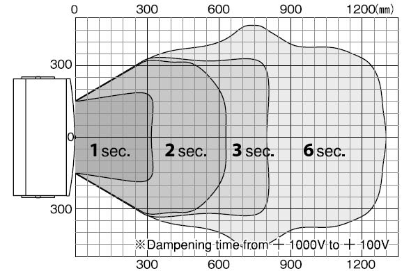 Specified 300m, 600mm, 900mm, 1200mm indicates the distance from Static Eraser