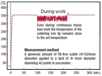 However, continuous use of a soldering iron over long periods brings the temperature of the tip down, and effects the quality of the finished solder joint.
