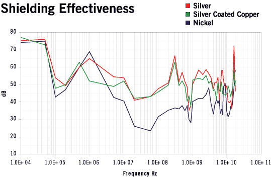 - Shielding effectivieness: One to two mil coating provides 40dB - 50dB
