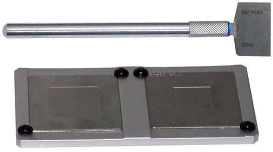 This set facilitates application of paste flux (or paste) onto the balls under the BGA packages. The plates can be ordered to accommodate different component sizes and ball diameters.