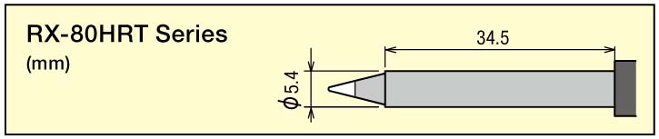 RX-80HRT series [72W]Applicable Soldering Unit : RX-85GAS/RX-80GAS Note: Since the heater is integrated in the tip, replacement of only the heater or the tip is not possible. |