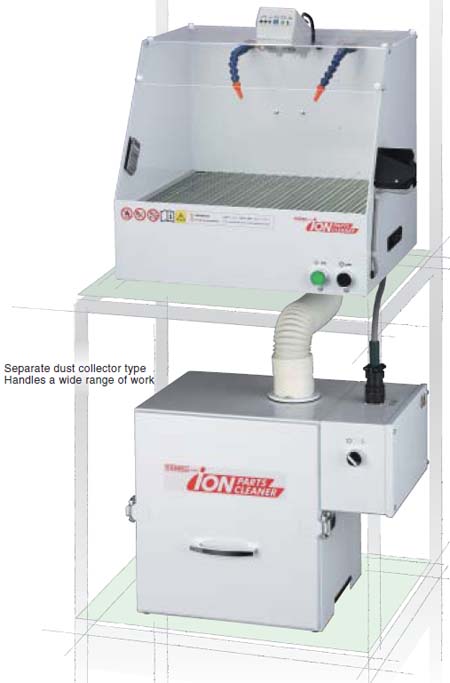 - An infrared sensor automatically controls dust removal air, so it can be operated with one hand, whereby boosting efficiency.