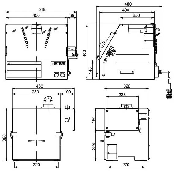 | DIMENSIONS | Hood H400×W518×D480mm Dust Collector H386×W450×D326mm |