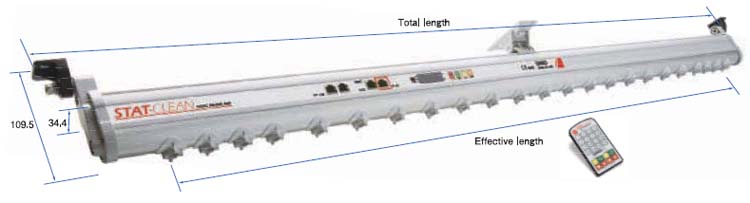 - Air purge. Stat ic electricity removal performance is enhanced by air flow. (Clean dry air / N2, Max. 0.5 MPa) Deodorizing air flow is deliberately kept low to conserve energy. Simply remove the plugs from either end to supply air. The bar can be used with air flow.