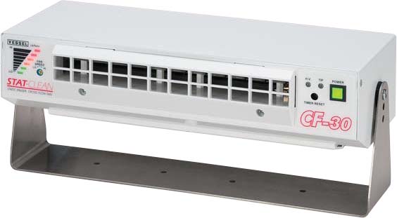 Newly developed: VESSEL ionizing blower with Cross-Flow Fan and capacity-coupled needle electrode units provide high-speed static removal.