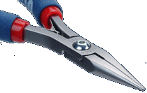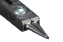 The Tronex needle nose plier is the same as the Tronex chain nose plier except that the jaws are machined in thin half cones. This thin profile increases tool access. The cone shape can be used for precision loop forming of leads or wire.