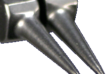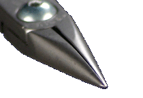 Tronex needle nose pliers feature very fine tips. Each of the two tips is .030" x .030". Also the four inner edges of the jaw are "eased" to protect leads or wire during forming. Tronex needle nose pliers have flat-faced inner jaws.