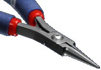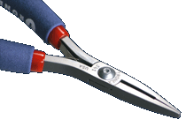 Chain nose pliers are commonly used in electronic assembly and rework. They are also used in fine jewelry and beading work. Tronex chain nose pliers feature a very fine tip (.060" x .050"), "eased" inner edges, and extended gripping power. Tronex chain nose pliers can have either flat-faced inner jaws or serrated inner jaws.